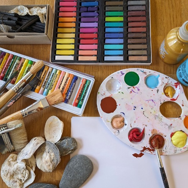 You’ll have access to a range of materials like paints, pastels, clay, natural objects, and collage. You can choose what feels best for you, and there’s no pressure to create in any specific way.